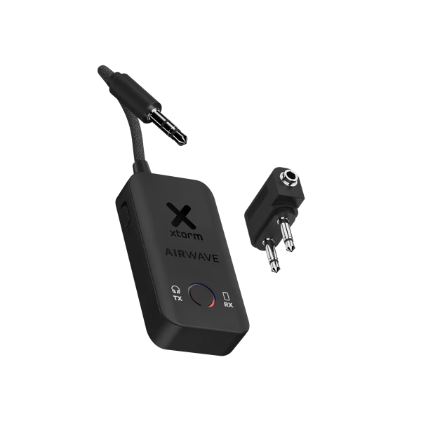 Die Verwendung des Xtorm AirWave Audio Adapters ist einfach. Schalten Sie zunächst Ihren drahtlosen Ohr- oder Kopfhörer in den Pairing-Modus. Schieben Sie den Schalter am AirWave auf TX und stecken Sie das Kabel des kabelloser Audioadapters in das Entertainment-System im Flugzeug oder im Fitnessstudio. Sie schalten den AirWave ein, indem Sie die Anzeige 3 Sekunden lang gedrückt halten. Die Anzeige blinkt nun rot und orange. Sobald die Verbindung hergestellt ist, leuchtet die Anzeige durchgehend orange. Wenn Sie die Anzeige 3 Sekunden lang gedrückt halten, schalten Sie den AirWave aus. Ein zweiter, zweipoliger Stereo-Flugzeugadapter ist im Lieferumfang enthalten. So haben Sie für jede Gelegenheit den richtigen Adapter.
