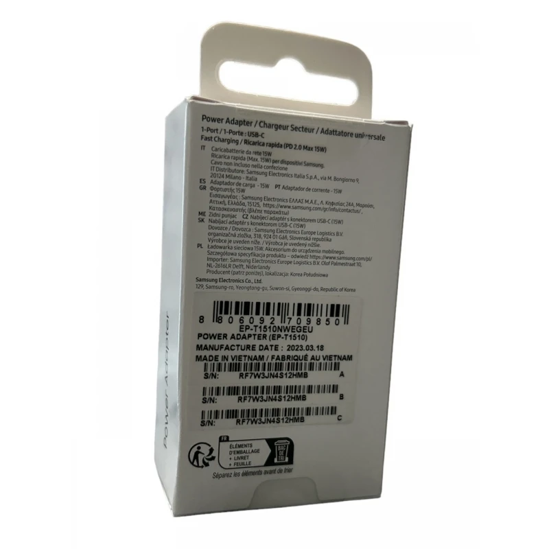 Potrai ricaricare il tuo Smartphone in modo veloce e sicuro usando questo adattatore Samsung che rispetta tutte le normative in Tema di sicurezza. Puoi usarlo anche per altri prodotti elettronici, come tablet, vidiocamere, lettori mp3 e così via. Questo adattatore è in confezione singola senza cavetto. Per il cavetto lo trovi nel nostro store, basta scegliere quello del Tipo-C verso Tipo-C. I colori Disponibili sono il Bianco Oppure il nero.
