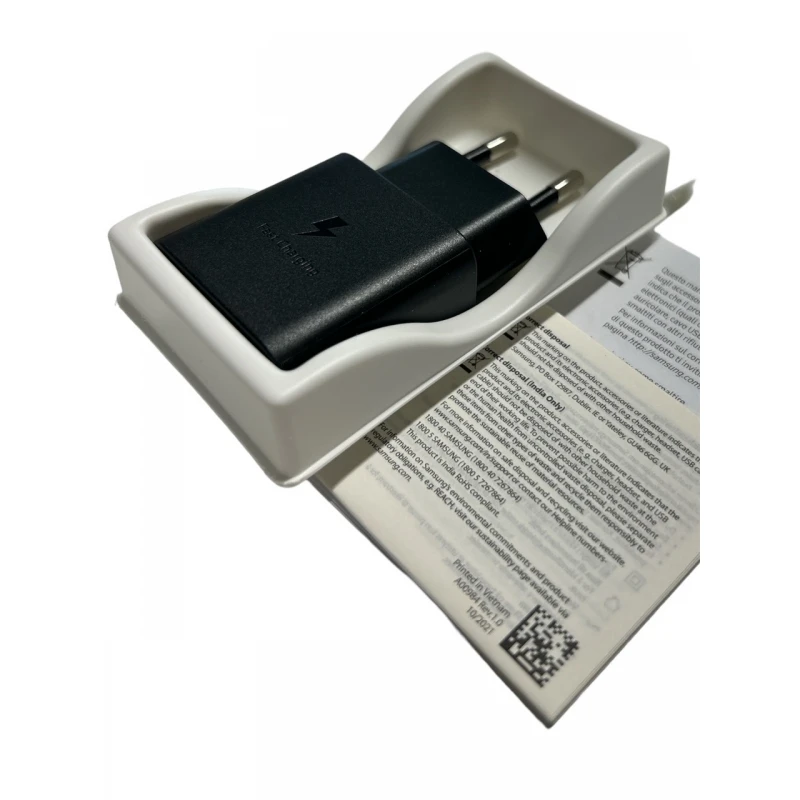 Potrai ricaricare il tuo Smartphone in modo veloce e sicuro usando questo adattatore Samsung che rispetta tutte le normative in Tema di sicurezza. Puoi usarlo anche per altri prodotti elettronici, come tablet, vidiocamere, lettori mp3 e così via. Questo adattatore è in confezione singola senza cavetto. Per il cavetto lo trovi nel nostro store, basta scegliere quello del Tipo-C verso Tipo-C. I colori Disponibili sono il Bianco Oppure il nero.