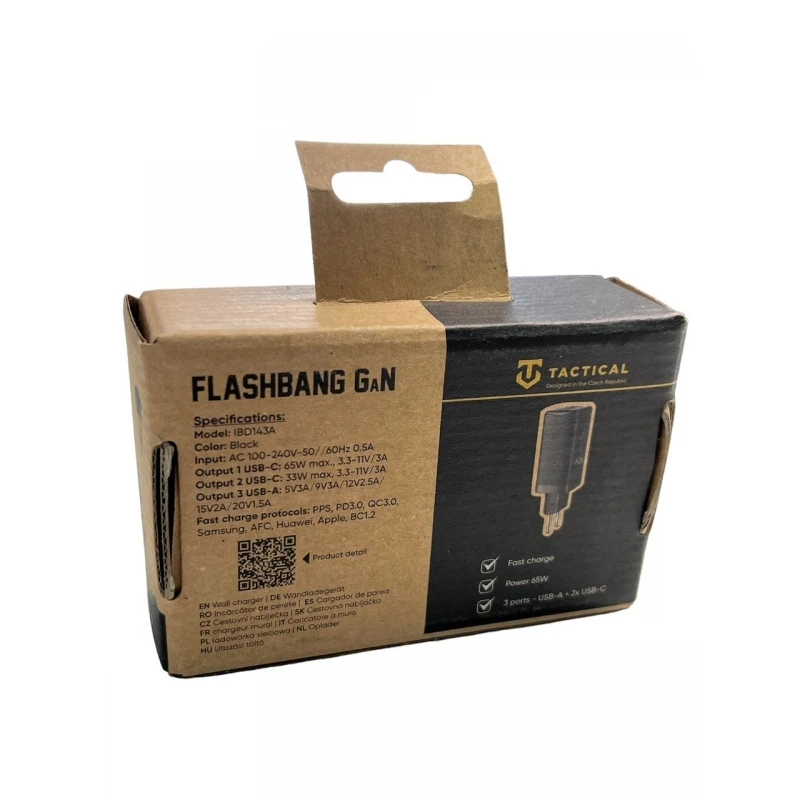 Tactical FlashBang GaN è un maestro nella versatilità. Supporta l’intera gamma di ricarica rapidastandard. Da PPS, passando per PD3.0, QC3.0, Samsung, AFC, Huawei, BC1.2 fino ad Apple.