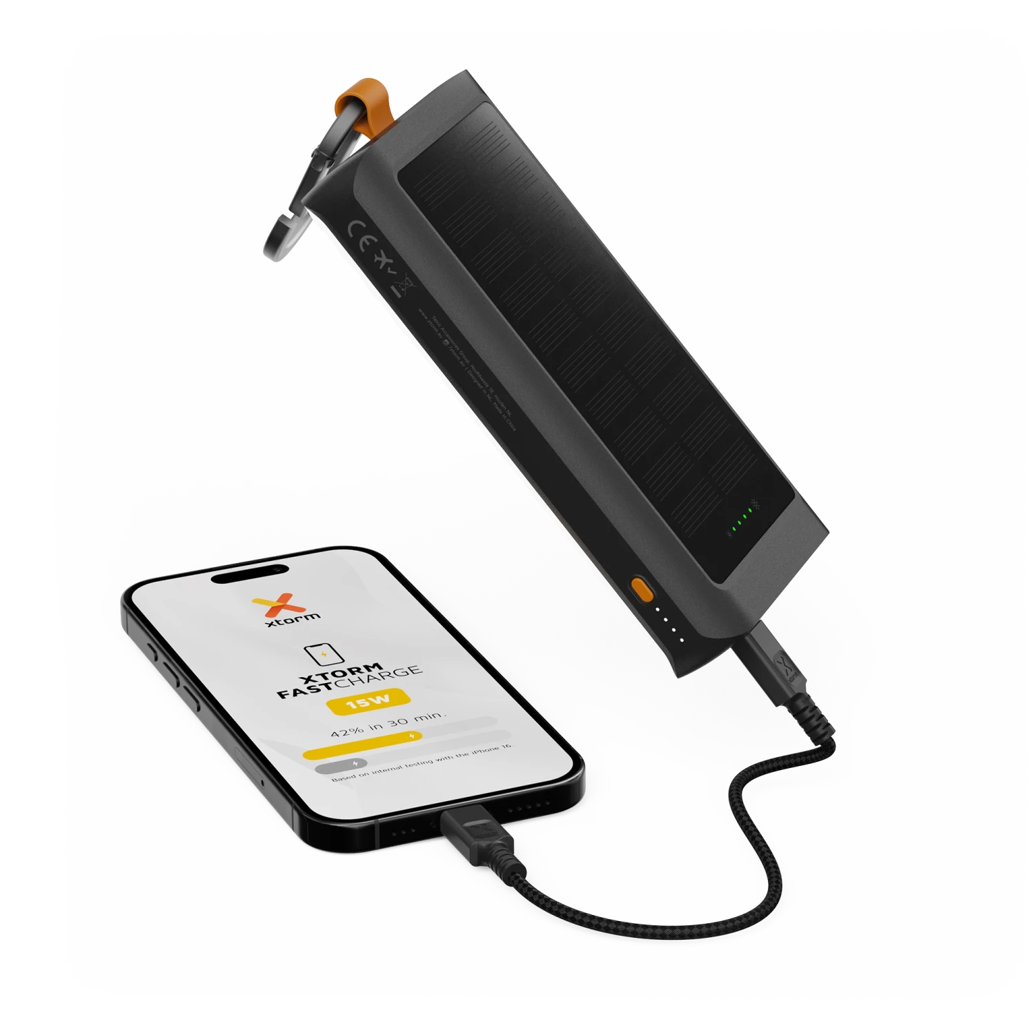 Xtorm engagiert sich für eine grünere Zukunft. Das Gehäuse der Go2 Power Bank besteht zu 85% aus recyceltem Kunststoff mit GRS-Zertifikat. Die Verpackung besteht fast vollständig aus FSC-zertifiziertem, recyceltem Papier. Auch der kleine Kunststoffhaken ist vollständig aus GRS-zertifiziertem, recyceltem Kunststoff gefertigt.