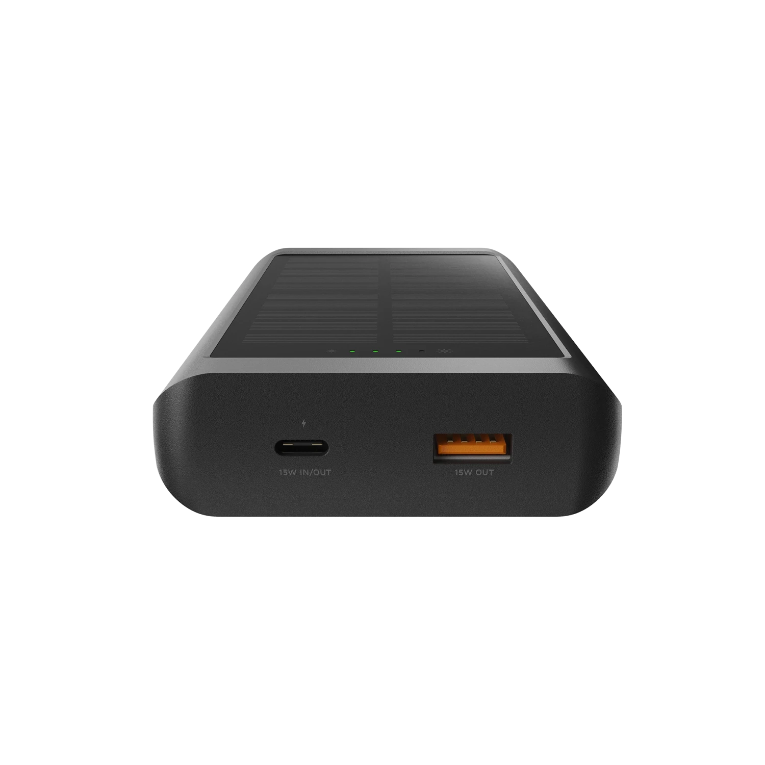 - Das 1,0-W-Solarpanel ist eher als Reservestromquelle denn als Hauptladegerät gedacht. Die vier grünen LED-Leuchten zeigen an, wie viel Solarenergie gesammelt wird. In der Bedienungsanleitung finden Sie eine Übersicht über die voraussichtlichen Ladezeiten.