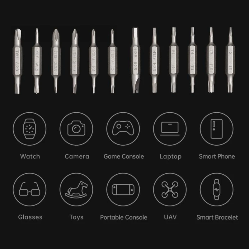 Questo set include diversi tipi di cacciavite di precisione.